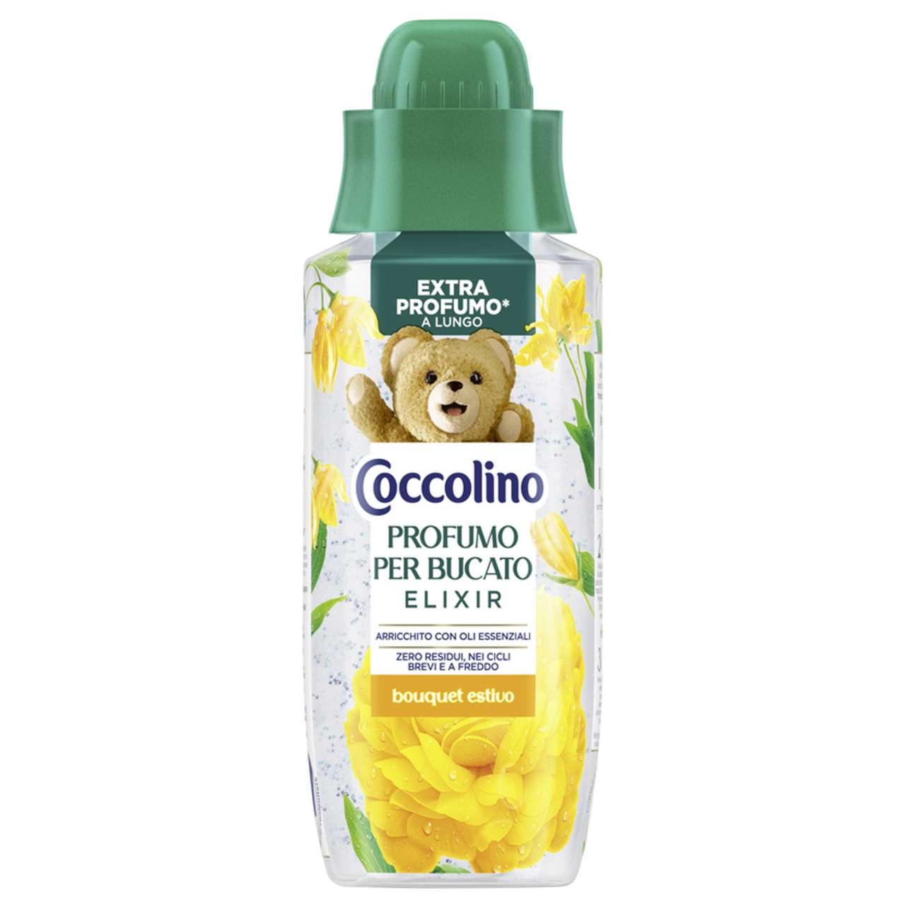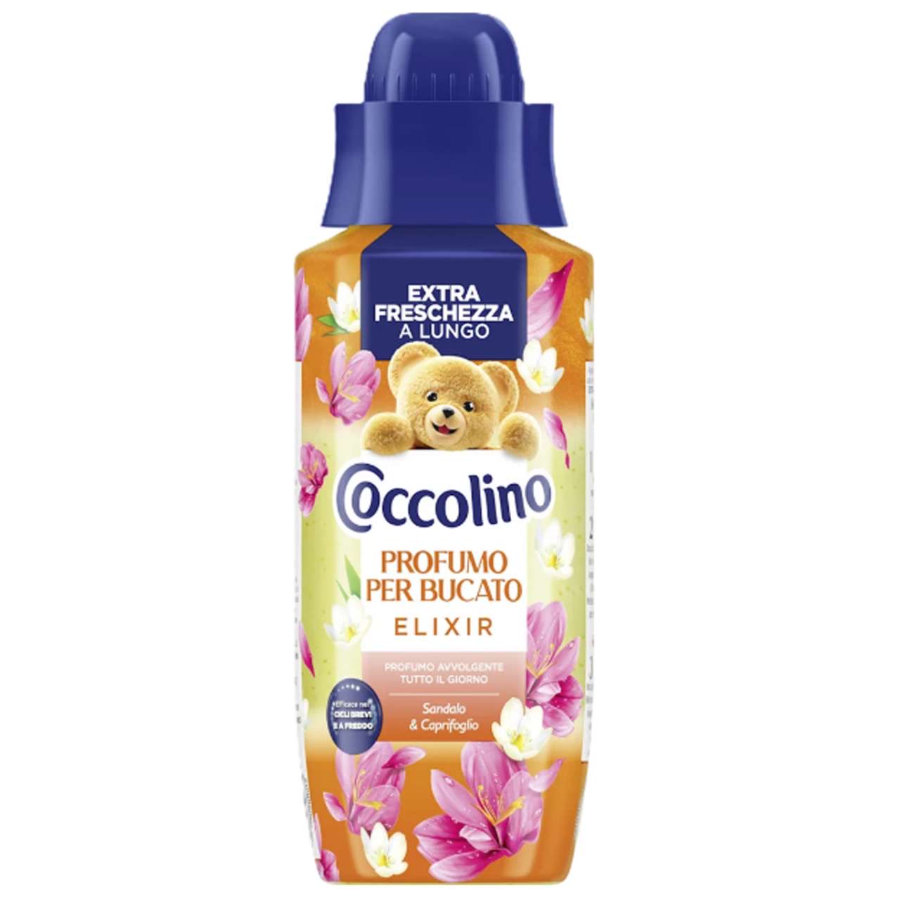 Coccolino Profumato per elixir disponibile in 6 profumazioni: Campanula Selvatica e Bergamotto – Bouquet Estivo – Sandalo e Caprifoglio – Freschezza Celeste – Piacevole Freschezza – Prima Fioritura